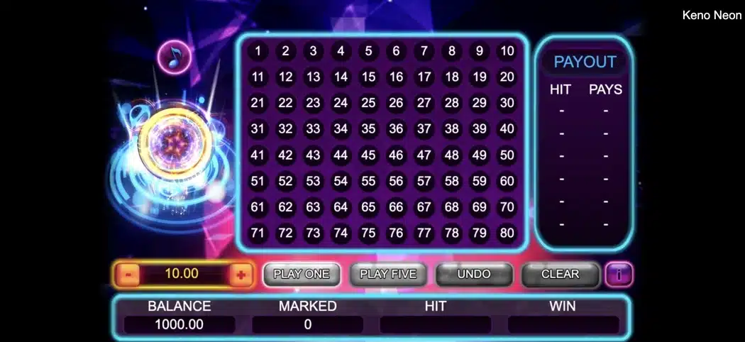InBet Games’ Turbo Keno is the second game. Its paytable shows that the payouts for matching numbers 1, 2, 3, and 4 are higher than those in Keno Neon. However, this game offers smaller winnings for larger numbers.